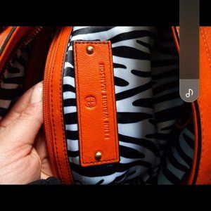 Beautiful orange designer handbag. Genuine leather. Super soft. Small pen mark inside bag, otherwise great condition.