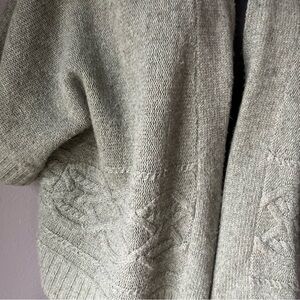 This is a Fenn Wright Manson open cardigan sweater in size XL. It features a sage green color, short sleeves, and an oversized fit. Made from a wool blend material, including nylon and angora, this cozy sweater is perfect for adding a pop of color to your wardrobe.