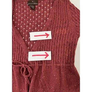 There is some discoloration on the left front side of this sweater, but other than that it is in good pre-owned condition.