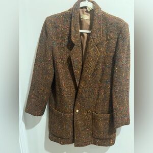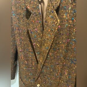 Vintage/Wool brown blazer with bright speckled colors. Don’t have too many details on this piece but it’s so cool!