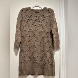 Fenn Wright Manson Woman XL Brown Wool Blend Open Knit 3/4 sweater Dress. Open knit. Geometric diamond pattern. Light used. Great condition. Some normal, light wear. No rips, stains or defects.