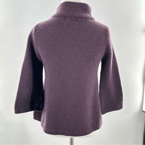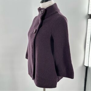 Fenn Wright Manson womens cardigan cropped sweater size M 70% lambswool 20% angora purple two button boxy mock turtleneck lagenlook