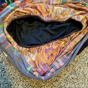 34" Fitted dress • polyester & spandex • elastic at the waist and gathered at the shoulders • lined at the bust• multicolored (Navy, Orange, red, yellow, pink, purple ) •