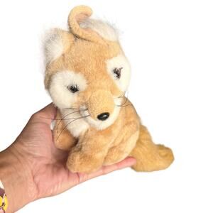 This vintage K&M stuffed animal features a realistic design of a Fennec Fox, with big ears, a long tail, and a soft plush texture. The toy is suitable for collectors or children alike. The beige color and small size of 6-14 inches make it an adorable addition to any stuffed animal collection.