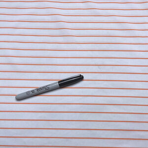 Fennec Highly Evolved Golf Polo SS Mens White/Orange Striped Polo. Mens Size L. Excellent pre-loved condition. Made in Korea. 95% Polyester - 5% Spandex. Dark spot near interior collar line, and lower torso as shown next to sharpie.