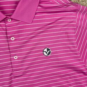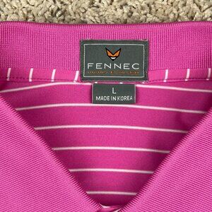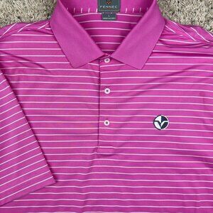 Fennec Pink Striped Polo Stretch Shirt Large Athletic Golfing Golf Club Logo