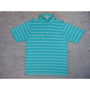 Fennec Polo Shirt Mens Large Teal Blue Striped Short Sleeve Golf Casual