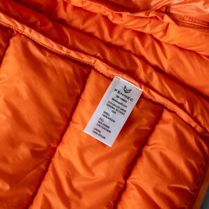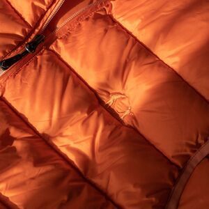 Orange down vest with subtle embroidered golfers detail on the chest.