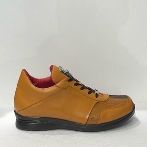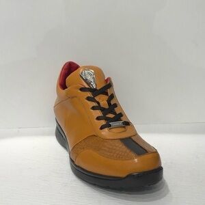 New in box made in Italy shoes cognac Italian leather calfskin/alligator brown thick sole very comfortable shoes
