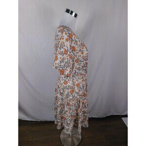 Fensace Large Cream Orange Floral Wrap V-Neck Midi Dress
