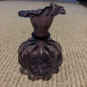 Fenton 1942 Scarce Mulberry Diamond Optic Petticoat Crimp 4” Melon Vase