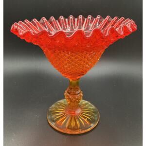 Fenton? Amberina Red / Orange Art Glass Ruffle-Edge Pedestal Bowl - Ornate Dish