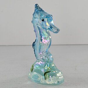 Fenton Art Glass Iridized Blue Seahorse Figurine Signed M. Young Rare