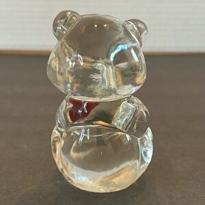 Fenton Bear Clear With Ruby Red Heart Figure Paperweight July Birthday Bear