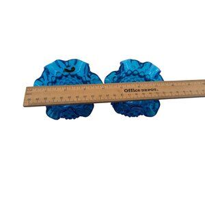These Fenton blue hobnail glass vases add a touch of elegance to any space. Their ruffled edges and vibrant hue make them a standout piece.