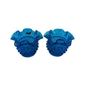 Fenton Blue Hobnail Glass Vase Set - 2 Pieces Ruffled Edge Collectibl