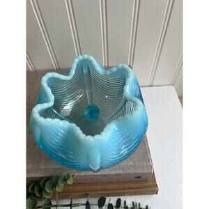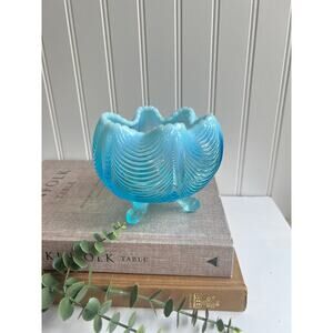 Fenton glass, opalescent glass, vintage rose bowl, blue glass vase, draped glass vase, collectible glassware, three-footed vase, vintage home decor, elegant glass vase, mid-century glass.