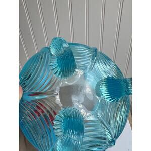 This exquisite Fenton rose bowl vase features a stunning blue opalescent glass with a draped design and three elegant feet. A beautiful addition to any vintage glass collection or as a statement piece in your home decor.