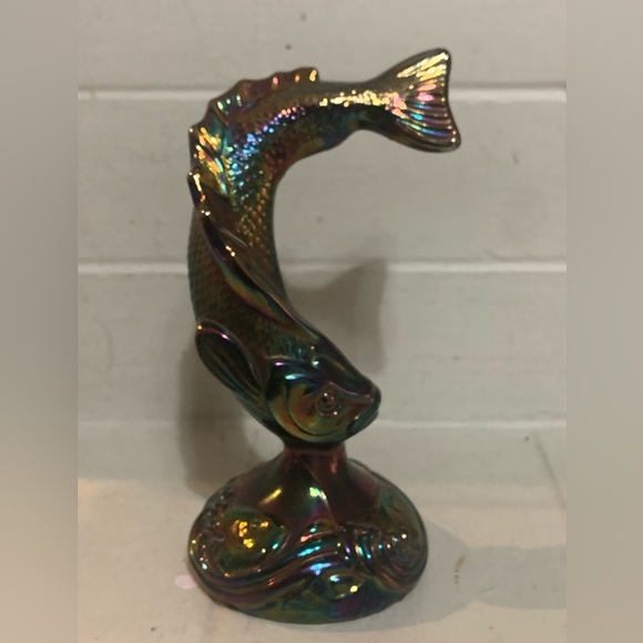 Fenton Carnival Glass Iridescent Japanese Koi Fish Paper Weight Vintage 1973. Comes exactly as shown. Pictures are part of the description. No chips or cracks. Thanks for looking.