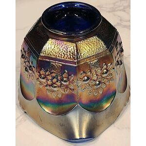 Fenton Carnival Glass Creamer Orange Tree Pattern Blue Base Scallop Edge GUC
