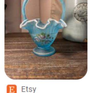 Fenton Charleton Collection Glass Hand Decorated Roses White Crested Frosted Light Blue Silver Crest Basket /Charleton Collection 2002