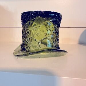 Fenton Colonial Green Glass Daisy and Button Top Hat Trinket Dish Vase