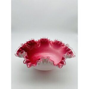 Fenton Cranberry Silver Crest Ruffle Crimped 10” Bowl