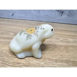 Fenton Custard Glass Frog Figurine Hand Painted Flowers Signed 4” Long