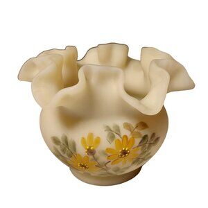 Fenton Custard Hand Painted By Sally Webster Ruffled Rose Bowl With Daisy Floral