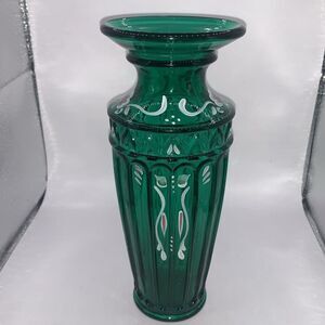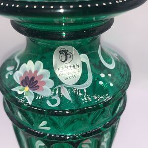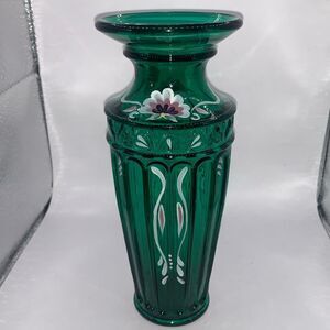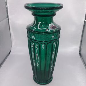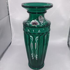 Fenton Emerald Green Painted Vase QVC No chips or cracks 7in tall