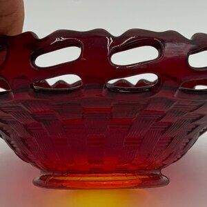 Fenton Glass 2 Row Open Edge Ruby Amberina Basket Weave Bowl. 6" dia. X 2.5" h.