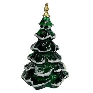 Fenton Glass CHRISTMAS TREE FIGURINE 6.5" LG Green Snow Frosted Gold Angel