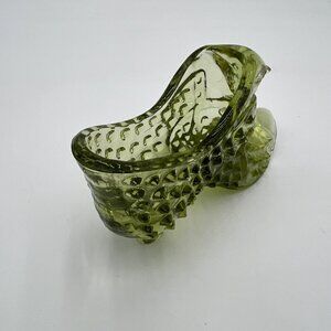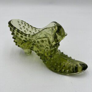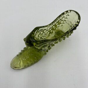 Fenton Glass Green Hobnail Cat Slipper Shoe in Excellent Condition