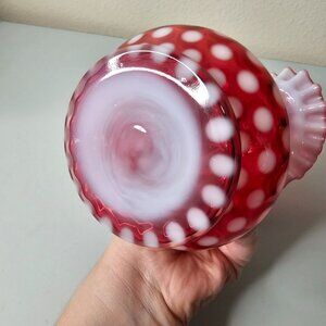 Fenton Glass Jack In The Pulpit Tulip Vase Cranberry White Polka Dot Ruffle 9"