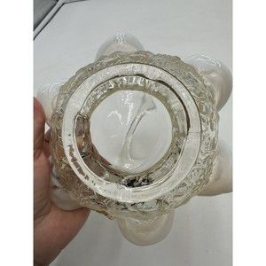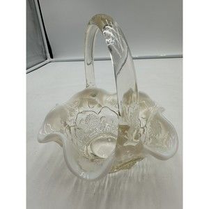 Fenton Handle Basket Bowl with Ruffled Edge Floral Pattern Opalescent Vintage