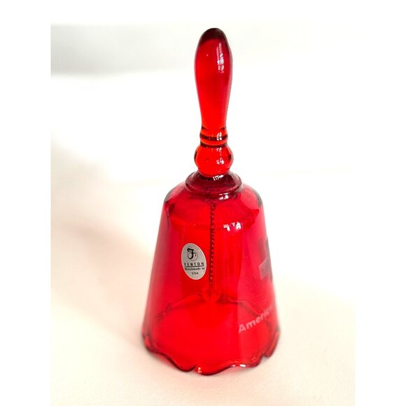 Fenton Handmade Red Glass Bell American Red Cross 2001 Etched Rim Vintage USA Ra
