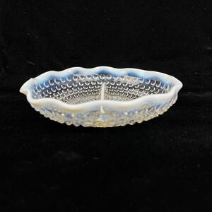 Fenton Hobnail Divided Glass Dish Clear Opalescent Wavy Edge Candy Relish Vtg