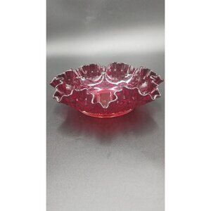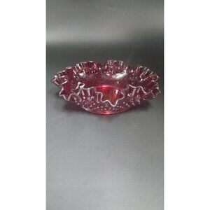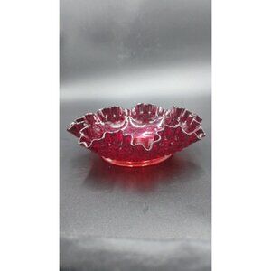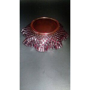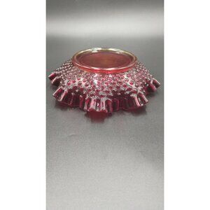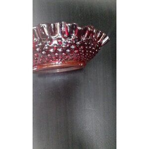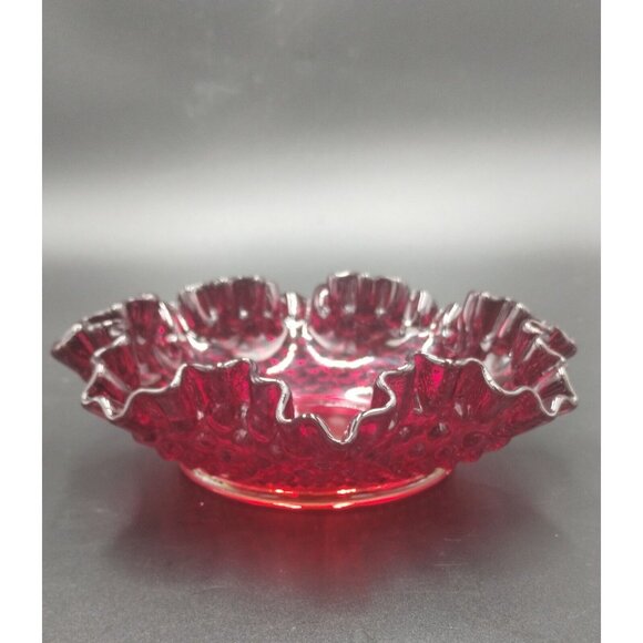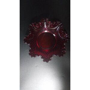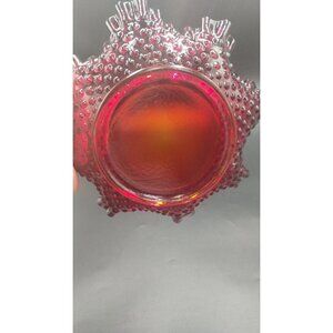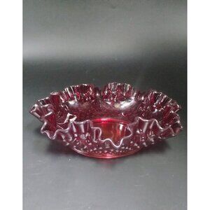 Fenton Hobnail Ruby Red Amberina Glow Ruffle Glass Candy Dish