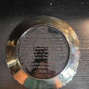 This beautiful collector plate from Fenton is a true gem for any vintage glass enthusiast. The iridescent "The Printer" design, produced in 1971, features a purple color and measures 8 inches in diameter. The plate is made of high-quality glass and has a round shape, with a printer character that adds to its charm. It is a perfect addition to any collection of decorative collectibles.