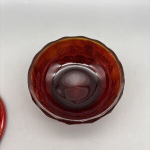 Fenton LG Wright Ruby Red Amberina Grape Design Candy Dish