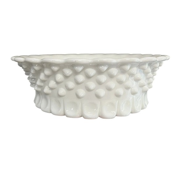 Keywords: milk glass bowl, vintage bowl, hobnail bowl, scalloped edge, candy dish, decorative bowl, vintage decor, milk glass, white bowl, home decor, table centerpiece, serving bowl, collectible bowl, retro bowl, cottagecore