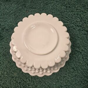 Fenton Mid-Century Hobnail White Scalloped Edge Milk Glass Bowl Cottagecore