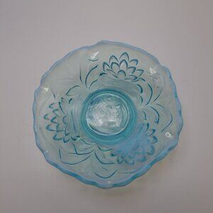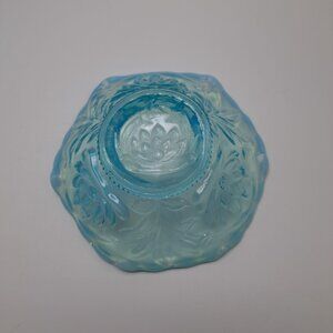 Fenton Opalescent Blue Glass Bowl Water Lily Cattails Ruffled Vintage 5 1/4"