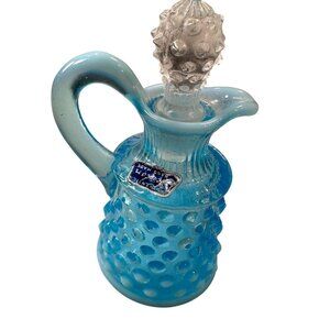 Fenton Opalescent Cruet Bottle Hobnail Pattern Clear Stopper Vintage Art Glass