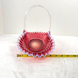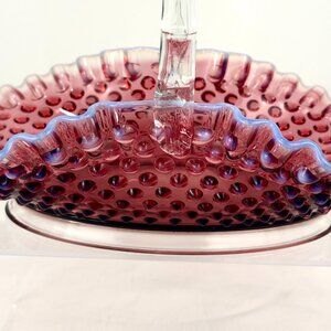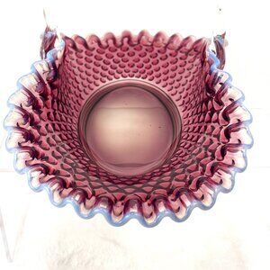 Fenton Plum Opalescent Hobnail Large 12.5" Oval Basket