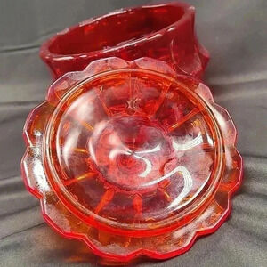 item is six inches tall with no issues with regard to damage, no chips or cracks. Lid finial has some Vaseline glass qualities