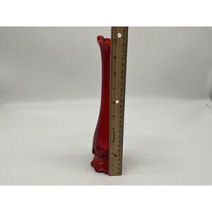 Fenton Red With a Hint of Amberina 10 Inch Cabbage Rose Stretch Bud Vase Vintage