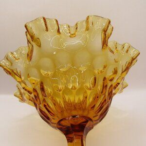 Round Compote Thumbprint Colonial Amber Vintage 1960's, Prior to 70's Fenton dishes were marked with applied oval labels which usually fell off, Large Fenton No chips, Pre Owned, In good condition with normal makers marks/imperfections such as bubbles, please look at all photos for a happy purchase.