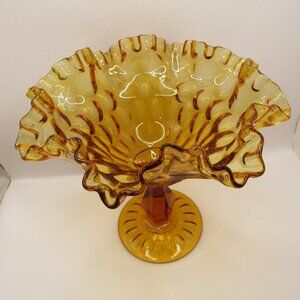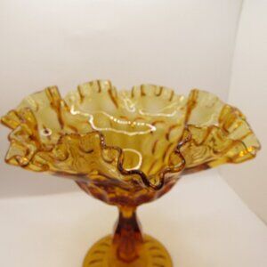 Fenton Round Compote Thumbprint Colonial Amber Ruffled Edge