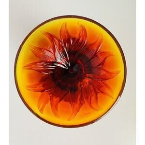 This stunning Fenton Glass vase is a beautiful addition to any collection. The ruby red amberina finish adds a touch of elegance and sophistication to any room. Hand blown with precision, this vase features a ruffled tulip orange design that is both unique and timeless.